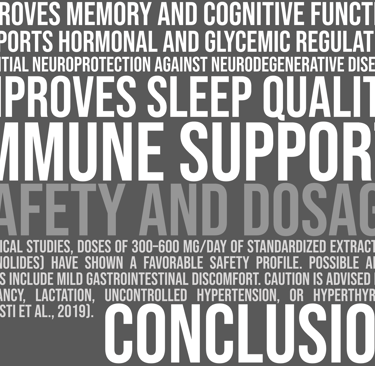 Scientific literature supports its use as a support for anxiety, prolonged stress, mild insomnia, immune system imbalances, and as a preventative supplement for chronic inflammatory processes and emotional exhaustion.