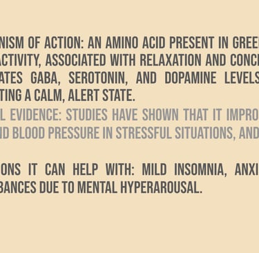 Conditions it may help with: generalized anxiety, chronic stress, stress-associated insomnia, mental fatigue, and stress-induced cognitive impairment.