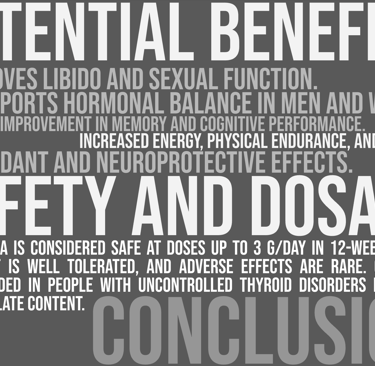 Clinical evidence: Studies have reported improvements in vitality, sexual function, memory, and mood, especially in people experiencing stress or work-related fatigue.