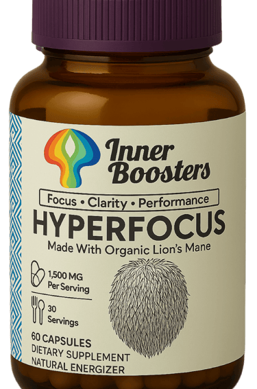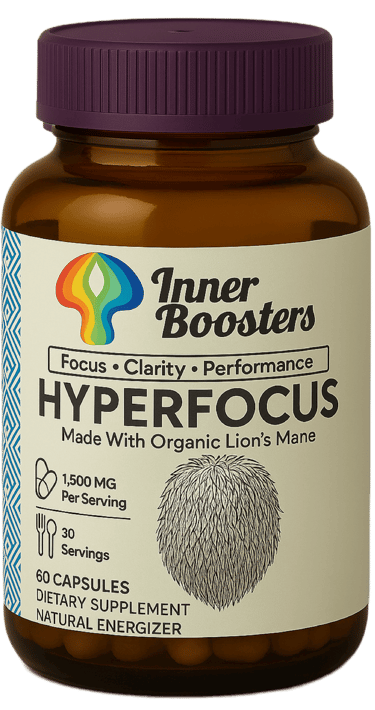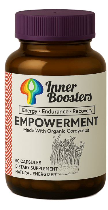 Inner Boosters blends natural adaptogens, medicinal mushrooms, and neuroscience-based formulations to activate your energy, sharpen your focus, and enhance emotional balance, sustainably and without harsh stimulants.